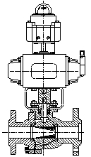 由單作用定位器輸出的氣信號壓力輸入到執(zhí)行機(jī)構(gòu)無彈簧一側(cè)的氣室中,氣信號壓力作用在活塞上形成的推力和彈簧力之間差值的作用下,氣缸活塞作直線 運(yùn)動,通過齒輪,齒條傳動。直至氣信號壓力形成的推力與彈簧力平衡,運(yùn)動停止。在執(zhí)行機(jī)構(gòu)主軸作旋轉(zhuǎn)運(yùn)動的同時帶動閥桿、閥芯作旋轉(zhuǎn)運(yùn)動,從而改變閥芯、閥座之間的流通面積,達(dá)到調(diào)節(jié)目的。