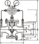 本系列減壓閥屬于先導(dǎo)活塞式減壓閥。由主閥和導(dǎo)閥兩部分組成。主閥主要由閥座、主閥盤、活塞、彈簧等零件組成。導(dǎo)閥主要由閥座、閥瓣、膜片、彈簧、調(diào)節(jié)彈簧等零件組成。通過(guò)調(diào)節(jié)調(diào)節(jié)彈簧壓力設(shè)定出口壓力、利用膜片傳感出口壓力變化,通過(guò)導(dǎo)閥啟閉驅(qū)動(dòng)活塞調(diào)節(jié)主閥節(jié)流部位過(guò)流面積的大小,實(shí)現(xiàn)減壓穩(wěn)壓功能。