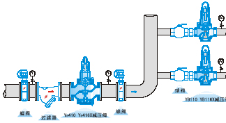 Y416X減壓閥在城市建筑、高層建筑的冷熱供水系統(tǒng)中,可取代常規(guī)分區(qū)水管,節(jié)省設(shè)備。也可在通常的冷熱水管網(wǎng)中,起減壓穩(wěn)壓作用。Y416X減壓閥調(diào)壓、穩(wěn)壓動作平穩(wěn),適用于水和非腐蝕性液體介質(zhì)的管路。Y416X直接作用彈簧薄膜式減壓閥主要由調(diào)節(jié)彈簧、膜片、活塞、閥座、閥瓣等零件組成。利用膜片直接傳感下游壓力驅(qū)動閥瓣,控制閥瓣開度完成減壓穩(wěn)壓功能。 |