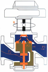 動(dòng)態(tài)平衡電動(dòng)調(diào)節(jié)閥是區(qū)別于傳統(tǒng)的電動(dòng)調(diào)節(jié)閥的新一代產(chǎn)品。是動(dòng)態(tài)平衡與電動(dòng)調(diào)節(jié)一體化的產(chǎn)品。如右圖所示,在系統(tǒng)負(fù)荷波動(dòng)較大的流量系統(tǒng)中,當(dāng)系統(tǒng)壓力變化時(shí),動(dòng)態(tài)平衡電動(dòng)調(diào)節(jié)閥二端的壓差(P1-P3)也隨之變化 |